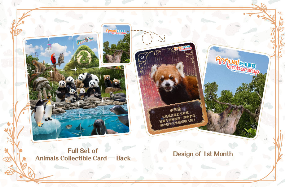 To celebrate the amazing happenings at Ocean Park, including the arrival of a pair of new Giant Pandas and the newborn Giant Panda twins to join our panda family! As a token of gratitude for the support of our Annual Members, we have specially designed a series of panda cubs collectible cards, which will be distributed monthly^ for members to collect for free!