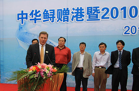 The Central Government placed great significance on the Chinese sturgeon presentation cum 2010 Xiamen Chinese sturgeon release ceremony today. Chairman of National Aquatic Wildlife Conservation Association, Mr. Li Yan Liang; Deputy Director, Regional Bureau of East China Sea Fishery Management, Ministry of Agriculture, Mr. Ma Yi; Professor Wei Qi Wei, Director of the Yangtze River Fisheries Research Institute of the Chinese Academy of Fisheries Science and a number of other officials attended the ceremony. Ocean Park Chief Executive, Mr. Tom Mehrmann, and other members of Ocean Park management were also present at today’s ceremony.