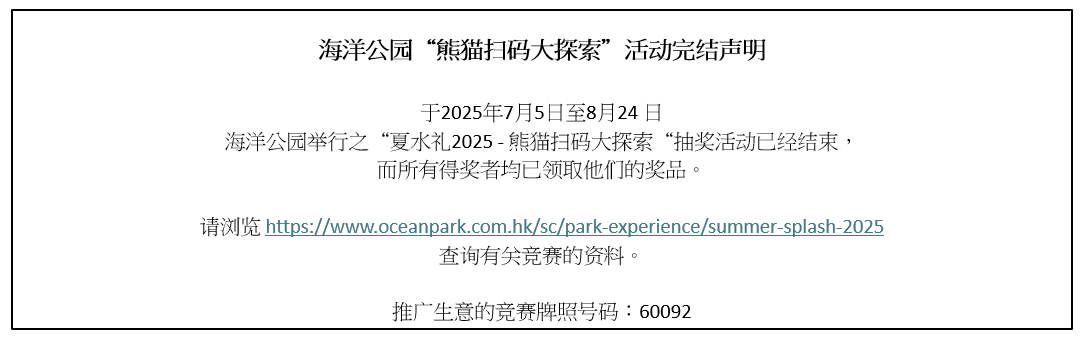 这个夏天,香港海洋公园 x AEON信用卡呈献:LINE FRIENDS x Panda Friends 夏水礼恰逢大熊猫成员生日,双重庆典与您尽情狂欢!超人气国际IP—LINE FRIENDS惊喜联名活泼可爱的香港海洋公园Panda Friends一起Go into Bamboo,发掘大熊猫的可爱日常,萌萌聯手一起宣扬爱护动物及保护大自然,还陪您尽兴投入水花大战,在连场超刺激的水枪大混战之中,投入透心凉盛夏!深受欢迎的"海豚探秘"互动环节《海洋守护者》请来知名舞台剧演员梁祖尧重新编排,这个夏天继续向大家宣扬保护海洋信息!